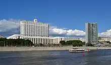 The Russian White House, official headquarters of the Government of Russia. The building is located in the capital city of Moscow.