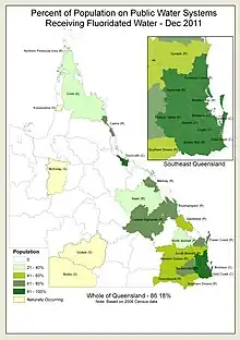 - ↑ "Fluoride coverage drops to 79 per cent of Queensland population". www.abc.net.au. 1 September 2015. Retrieved 18 February 2021.