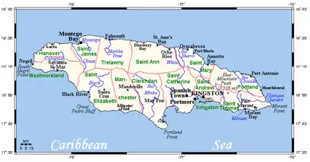 - ↑ Wint, W. (2008). "Jamaica's Water Among the Best Quality in the World". Jamaica Information Service. Retrieved 2010-04-16.