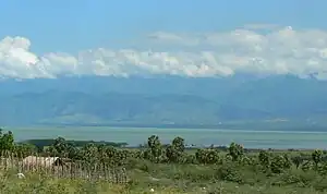 South shore of the saline Lake Enriquillo, looking northward to the Sierra de Neiba mountains; Independencia Province.
