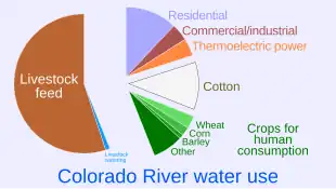 - 1 2 Shao, Elena (22 May 2023). "The Colorado River Is Shrinking. See What's Using All the Water". The New York Times. Archived from the original on 23 May 2023. ● Shao cites Richter, Brian D.; Bartak, Dominique; Cladwell, Peter; Davis, Kyle Frankel; et al. (April 2020). "Water scarcity and fish imperilment driven by beef production". Nature Sustainability. 3 (4): 319–328. Bibcode:2020NatSu...3..319R. doi:10.1038/s41893-020-0483-z. S2CID 211730442.