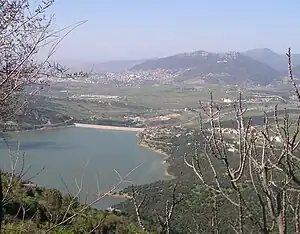 Since rainfall is highly seasonal, surface water is stored in 72 reservoirs with a total production capacity of 7.4 billion m3 per year in 2009.[13] Most of this water is used for irrigation. Total drinking water supply was about 2.8 billion m3 per year.[7] One of the largest reservoir systems in Algeria is the Beni Haroun complex in Mila Province that supplies water for irrigation and drinking water to 4 million people in six provinces in the East of Algeria. Another large system is the Taksebt complex in Tizi Ouzou in Kabylie. It supplies three provinces, including parts of the capital Algiers, with drinking water. In the Bouïra Province, water is supplied from the Koudiat Acerdoune dam. The longest water transfer project in Algeria, dubbed "project of the century", transfers non-renewable groundwater from In Salah to Tamanrasset in the Sahara over a distance of 750 km.[13] It was completed in 2011 at a cost of US$2.5 billion.[14]