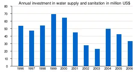 | Annual investment in water supply and sanitation | US$3.7/capita (2006)[2] |