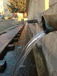 Many Italian cities receive their drinking water from groundwater and springs. For example, Rome receives 97% of its drinking water from springs and 3% from wells.[13] Milan receives its drinking water from 433 wells in the vicinity of the city.[14] However, other Italian cities get most of their drinking water from rivers. For example, Florence gets most of its drinking water from the Arno River, and the Naples region receives its drinking water through the Western Campania Aqueduct from the Gari River.[15]