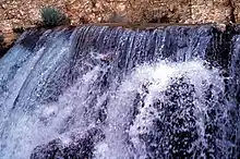 Water resources are polluted by the discharge of untreated or insufficiently treated industrial and domestic wastewater, leaching from septic tanks, agricultural non-point sources such as pesticides and nitrates, hospital waste and domestic solid waste, as well as the discharge of motor oil. The Ghadir river in the South of Beirut is probably the most polluted river in the country, while the Wazzani River in South Lebanon may be the least polluted river because of limited economic activity in its basin.[18] The discharge of untreated municipal and industrial effluents, the drainage from agricultural lands, and the uncontrolled discharge of solid wastes have considerably degraded the water quality of the Qaraoun Lake and the Litani River. Untreated industrial effluents are discharged into the lake and river from sugar-beet factories, paper factories, lead recovery plants, limestone crushers, agro-industries, poultry farms, tanneries and slaughterhouses.[19] According to a 1998 study by the National Council of Scientific Research of Lebanon for UNICEF 60–70% percent of all natural sources were affected by bacterial contamination.[20] An example is the Jeita spring, which has witnessed an increase in fecal coliform bacteria.[21]