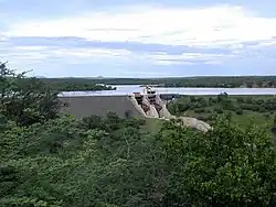 Many of the ephemeral (seasonally flowing) rivers of the Namibian interior are dammed and, according to the FAO, provide a 95%-assured yield of 96 million m3/year, based on historical rainfall data. These dams have low safe yields in comparison to their total volume, because of uneven flows over time and high evaporation losses. Thus only about half the water from ephemeral rivers is usable. There is surplus water in some dams, e.g. in the Oanob Dam, the Hardap Dam, the Naute Dam and the Friedenau Dam.[8] This surplus water cannot be used because of the remote location of these dams and the comparatively limited local demand.
