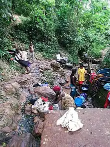 As of 2015, 67% of the total population of Nigeria had access to at least basic water supplies.[8][9] This was 82% of the urban population and 54% of the rural population. Most people in Nigeria do not have access to clean water, especially in the rural areas.[10] The global water sanitation and hygiene statistics shows that 79 per cent of Nigerians go through the challenge of water scarcity.[11] In 2015, around 60 million people lacked access to "at least basic" water. As for sanitation, only 33% of the total population had access to "at least basic" sanitation. This was 39% of the urban population and 27% of the rural population. Approximately 122 million people still lacked access to "at least basic" sanitation.[9][12]