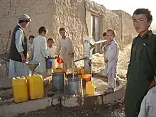As of 2005, about half a million people or 15% of the population of Kabul were connected to the piped water supply system through an estimated 30,000 house connections. Some of those who are not connected receive water from their neighbors or from public hand pumps, both of which are considered as improved water sources. Many Kabul residents get their water from up to 100,000 shallow private wells that are often polluted and vulnerable to drought.[12] According to a United States Geological Survey study carried out from 2005 to 2007, about a quarter of shallow wells have fallen dry. Roughly 40% of the remaining wells could fall seasonally or permanently dry because of increased withdrawals, if they are not deepened. Reduced water availability because of the impacts of climate change could further exacerbate the situation.[13]