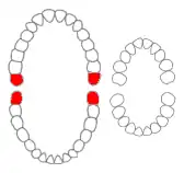 Wisdom teeth in the human mouth for permanent teeth. There are none in deciduous (children's) teeth. | |