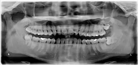 - 1 2 McCoy JM (September 2012). "Complications of retention: pathology associated with retained third molars". Atlas of the Oral and Maxillofacial Surgery Clinics of North America. 20 (2): 177–195. doi:10.1016/j.cxom.2012.06.002. ISBN 978-1455747887. PMID 23021395.