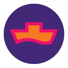 The mobile gynecological clinic was designed and named by Dutch artist and sculptor Atelier van Lieshout. Known as the A-Portable, the clinic is in a retrofitted shipping container. It is painted a light blue color with the Women on Waves logo painted on the sides.[1] To travel, the shipping container is strapped onto ships registered in the Netherlands, and rented by Women on Waves, which is a nongovernmental organization (NGO). Lambert-Beatty describes the logo, which was designed by Kees Ryter in 2001: [the clinic's] "side is emblazoned with a purple spot on which, in turn, floats an orange shape outlined in pink: a squared cross, one quickly realizes, of the kind that symbolizes humanitarian and medical aid."[1] p. 309