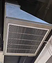 The CDC suggests that, in non-healthcare settings, building ventilation should be brought up to 5 air changes per hour, along with the use of MERV-13 filters, the use of air purifiers (air cleaners), and upper-room Ultraviolet germicidal irradiation (UVGI) to reduce the odds of infection and people coming down with COVID-19.[32][33] The UVGI systems are said to be similar to the UVGI systems used against tuberculosis in the past in healthcare facilities.[34][33] As for ventilation, a survey conducted under 1989 ASHRAE standards showed that, of the buildings constructed in prior years and surveyed, all but one did not meet the recommended 5 ACH.[35]