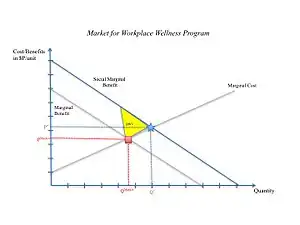 Workplace wellness programs have many components to help improve health outcomes and decrease health disparities. These components include smoking cessation programs, fitness center memberships, nutrition aids, and biometric screenings, often in exchange for health insurance premium reductions.[37] The benefits of wellness programs are not limited to corporations and their employees; Otenyo and Smith argue that engaging in such programs produces positive spillover effects for society that are not reflected in markets, leading to them under consumption.[38]