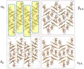 Rifaximin can exist in different crystalline forms depending on the degree of hydration. They drastically differ in water solubility, which has to be taken into account during the manufacturing process.[45][46] Wet rifaximin exists in the β-form, which can be dehydrated to obtain forms α and δ. ε-Form can be only obtained by dehydrating δ-form. Amongst them, γ-form is the most stable and is resistant to high humidity levels.[47]