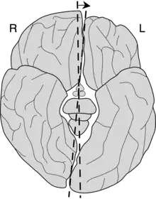 Yakovlevian torque (also known as occipital bending (OB)[2] or counterclockwise brain torque[3]) is the tendency of the right side of the human brain to be warped slightly forward relative to the left and the left side of the human brain to be warped slightly backward relative to the right. This is responsible for certain asymmetries, such as how the lateral sulcus of the human brain is often longer and less curved on the left side of the brain relative to the right. Stated in another way, Yakovlevian torque can be defined by the existence of right-frontal and left-occipital petalias, which are protrusions of the surface of one hemisphere relative to the other. It is named for Paul Ivan Yakovlev (1894–1983), a Russian-American neuroanatomist from Harvard Medical School.[1][4]