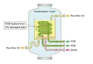 - 1 2 3 "Contamination of rice bran oil with PCB used as the heating medium by leakage through penetration holes at the heating coil tube in deodorization chamber". Hatamura Institute for the Advancement of Technology. Retrieved 2007-12-11.