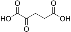 α-Ketoglutaric acid is an organic compound with the formula H2CC(O)(CH2)2CO2H). A white, nontoxic solid, it is a common dicarboxylic acid. Relevant to its biological roles, it exists in water as its conjugate base α-ketoglutarate. It is also classified as a 2-ketocarboxylic acid. β-Ketoglutaric acid is an isomer. "Ketoglutaric acid" and "ketoglutarate", when not qualified as α or β, almost always refers respectively to α-ketoglutaric acid or α-ketoglutarate.[2]