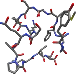 α-Endorphin (alpha-endorphin) is an endogenous opioid peptide with a length of 16 amino acids, and the amino acid sequence: Tyr-Gly-Gly-Phe-Met-Thr-Ser-Glu-Lys-Ser-Gln-Thr-Pro-Leu-Val-Thr.[1] With the use of mass spectrometry, Nicholas Ling was able to determine the primary sequence of a-endorphin.[2]