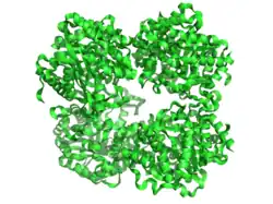 - ↑ PDB: 3AHX; Jeng WY, Wang NC, Lin MH, Lin CT, Liaw YC, Chang WJ, et al. (January 2011). "Structural and functional analysis of three β-glucosidases from bacterium Clostridium cellulovorans, fungus Trichoderma reesei and termite Neotermes koshunensis" (PDF). Journal of Structural Biology. 173 (1): 46–56. doi:10.1016/j.jsb.2010.07.008. PMID 20682343.; rendered via PyMOL.