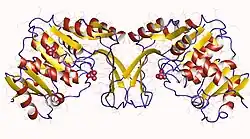As of 2021, two structures have been solved for this class of enzymes, with the PDB accession codes 2JG5 and 2ABQ, both from structural genomics efforts. The protein is a homodimer.