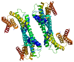 - ↑ De Valck D, Heyninck K, Van Criekinge W, Vandenabeele P, Fiers W, Beyaert R (September 1997). "A20 inhibits NF-kappaB activation independently of binding to 14-3-3 proteins". Biochemical and Biophysical Research Communications. 238 (2): 590–4. doi:10.1006/bbrc.1997.7343. PMID 9299557.