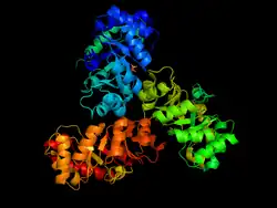 - 1 2 Mavridis IM, Tulinsky A (October 1976). "The folding and quaternary structure of trimeric 2-keto-3-deoxy-6-phosphogluconic aldolase at 3.5-A resolution". Biochemistry. 15 (20): 4410–7. doi:10.1021/bi00665a010. PMID 974067.