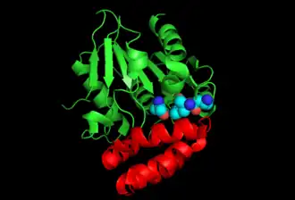 - 1 2 Sun Y, Yin S, Feng Y, Li J, Zhou J, Liu C, Zhu G, Guo Z (May 2014). "Molecular basis of the general base catalysis of an α/β-hydrolase catalytic triad". The Journal of Biological Chemistry. 289 (22): 15867–79. doi:10.1074/jbc.M113.535641. PMC 4140940. PMID 24737327.