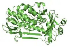 The enzyme 4-hydroxybenzoate 3-monooxygenase, also commonly referred to as para-hydroxybenzoate hydroxylase (PHBH), is a flavoprotein belonging to the family of oxidoreductases. Specifically, it is a hydroxylase, and is one of the most studied enzymes and catalyzes reactions involved in soil detoxification, metabolism, and other biosynthetic processes.[1]