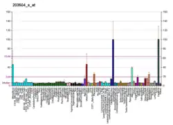Mutations in this gene have been associated with Tangier disease and familial high-density lipoprotein deficiency. ABCA1 has been shown to be reduced in Tangier disease which features physiological deficiencies of HDL.[22][23] Leukocytes' ABCA1 gene expression is upregulated in postmenopausal women receiving hormone replacement therapy (HRP).[24] ABCA1 expression is also upregulated in tumor-associated astroctytes surrounding glioblastoma brain tumors, and is important to the tumor progression. [25][26]