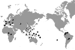 The frequency of alleles for dry ear wax is most concentrated in East Asia; most notably China, Japan, Korea, and Mongolia. The allele frequency is highest among the northern Han Chinese and Koreans; followed by Mongols, southern Han Chinese, and Yamato Japanese, respectively. The frequency is low among the Ryukyuans and Ainu compared to other East Asians.[8] As the mutation was already present in the Tianyuan man of Northern China, this suggests the genetic continuity of the variant in East Asia for the last 40,000 years.[14] After East Asians, the Indigenous peoples of the Americas exhibit the highest frequency of this mutation.[15] The derived allele is not rare in South Asia, with 54% of Dravidian people from Tamil Nadu carrying an AA genotype.[8] A downward gradient of dry ear wax allele phenotypes can be drawn from northern China to southern Asia and an east–west gradient can also be drawn from eastern Siberia to western Europe.[8] The allele frequencies within ethnicities continued to be maintained because the ABCC11 gene is inherited as a haplotype, a group of genes or alleles that tend to be inherited as a single unit.[8][16]