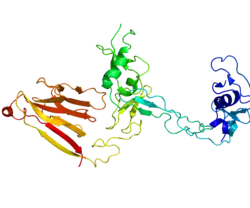 ADAMTS13 (a disintegrin and metalloproteinase with a thrombospondin type 1 motif, member 13)—also known as von Willebrand factor-cleaving protease (VWFCP)—is a zinc-containing metalloprotease enzyme that cleaves von Willebrand factor (vWf), a large protein involved in blood clotting. It is secreted into the blood and degrades large vWf multimers, decreasing their activity, hence ADAMTS13 acts to reduce thrombus formation.[5]