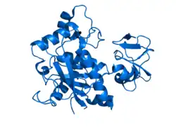 - ↑ Mosyak L, Georgiadis K, Shane T, Svenson K, Hebert T, McDonagh T, Mackie S, Olland S, Lin L, Zhong X, Kriz R, Reifenberg EL, Collins-Racie LA, Corcoran C, Freeman B, Zollner R, Marvell T, Vera M, Sum PE, Lavallie ER, Stahl M, Somers W (2008). "Crystal structures of the two major aggrecan degrading enzymes, ADAMTS4 and ADAMTS5". Protein Sci. 17 (1): 16–21. doi:10.1110/ps.073287008. PMC 2144589. PMID 18042673.