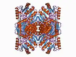 - ↑ Pereira F, Rosenmann E, Nylen E, Kaufman M, Pinsky L, Wrogemann K (March 1991). "The 56 kDa androgen binding protein is an aldehyde dehydrogenase". Biochemical and Biophysical Research Communications. 175 (3): 831–8. doi:10.1016/0006-291X(91)91640-X. PMID 1709013.