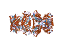 Aldehyde dehydrogenase 7 family, member A1, also known as ALDH7A1 or antiquitin, is an enzyme that in humans is encoded by the ALDH7A1 gene.[5] The protein encoded by this gene is a member of subfamily 7 in the aldehyde dehydrogenase gene family. These enzymes are thought to play a major role in the detoxification of aldehydes generated by alcohol metabolism and lipid peroxidation. This particular member has homology to a previously described protein from the green garden pea, the 26g pea turgor protein. It is also involved in lysine catabolism that is known to occur in the mitochondrial matrix. Recent reports show that this protein is found both in the cytosol and the mitochondria, and the two forms likely arise from the use of alternative translation initiation sites. An additional variant encoding a different isoform has also been found for this gene. Mutations in this gene are associated with pyridoxine-dependent epilepsy. Several related pseudogenes have also been identified.[6]