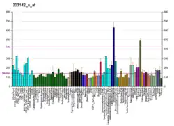 - Guinn BA, Bland EA, Lodi U, Liggins AP, Tobal K, Petters S, Wells JW, Banham AH, Mufti GJ (Oct 2005). "Humoral detection of leukaemia-associated antigens in presentation acute myeloid leukaemia". Biochemical and Biophysical Research Communications. 335 (4): 1293–304. doi:10.1016/j.bbrc.2005.08.024. PMID 16112646.