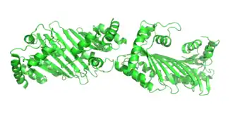 - ↑ PDB: 2NYT; Prochnow C, Bransteitter R, Klein MG, Goodman MF, Chen XS (January 2007). "The APOBEC-2 crystal structure and functional implications for the deaminase AID". Nature. 445 (7126): 447–451. Bibcode:2007Natur.445..447P. doi:10.1038/nature05492. PMID 17187054. S2CID 4394772.; rendered using PyMOL.