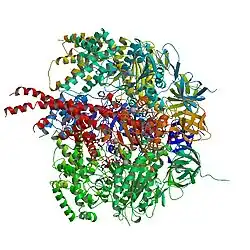 - ↑ Skordalakes, Emmanuel; Berger, James M (July 2003). "Structure of the Rho Transcription Terminator". Cell. 114 (1): 135–146. doi:10.1016/S0092-8674(03)00512-9. PMID 12859904. S2CID 5765103.
