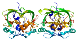 - ↑ Petrakis S, Raskó T, Russ J, Friedrich RP, Stroedicke M, Riechers SP, et al. (Aug 2012). "Identification of human proteins that modify misfolding and proteotoxicity of pathogenic ataxin-1". PLOS Genetics. 8 (8): e1002897. doi:10.1371/journal.pgen.1002897. PMC 3420947. PMID 22916034.