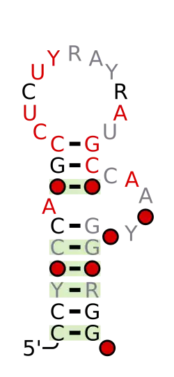 - ↑ Weinberg Z, Lünse CE, Corbino KA, Ames TD, Nelson JW, Roth A, Perkins KR, Sherlock ME, Breaker RR (October 2017). "Detection of 224 candidate structured RNAs by comparative analysis of specific subsets of intergenic regions". Nucleic Acids Res. 45 (18): 10811–10823. doi:10.1093/nar/gkx699. PMC 5737381. PMID 28977401.