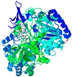 - ↑ Seiffert GB, Ullmann GM, Messerschmidt A, Schink B, Kroneck PM, Einsle O (February 2007). "Structure of the non-redox-active tungsten/[4Fe:4S] enzyme acetylene hydratase". Proceedings of the National Academy of Sciences of the United States of America. 104 (9): 3073–3077. doi:10.1073/pnas.0610407104. PMC 1805521. PMID 17360611.
