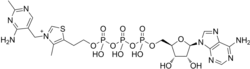 Adenosine thiamine triphosphate (AThTP), or thiaminylated adenosine triphosphate, is a natural thiamine adenine nucleotide.[1] It was discovered in Escherichia coli where it may account for up to 15 - 20% of total thiamine under carbon starvation. AThTP also exists in eukaryotic organisms such as yeast, roots of higher plants and animal tissues, albeit at a much lower concentration. It was found to exist in small amounts in the muscle, heart, brain, kidneys and liver of mice.[2]