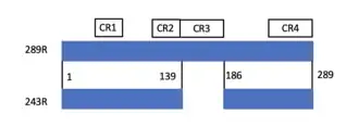 The adenovirus early region 1A (E1A) 289R protein is composed of 289 amino acids, with four conserved regions: CR1 (42-80), CR2 (115-137), CR3 (145-191),[14] CR4 (240-289). In 243R, the CR3 is absent. These conserved domains are responsible for the protein-protein interaction and the regulation of cell cycling and cellular responses. Overall, the intrinsic structure of E1A is highly disordered, meaning that it lacks a single, three-dimensional structure.[15]