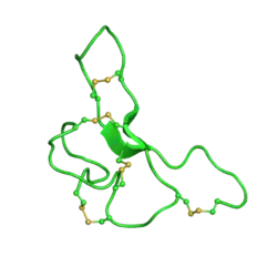 Agouti signalling peptide adopts an inhibitor cystine knot motif.[19] Along with the homologous Agouti-related peptide, these are the only known mammalian proteins to adopt this fold. The peptide consists of 131 amino acids. [20]