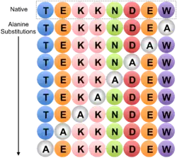 - ↑ Morrison KL, Weiss GA (June 2001). "Combinatorial alanine-scanning". Curr Opin Chem Biol. 5 (3): 302–7. doi:10.1016/S1367-5931(00)00206-4. PMID 11479122.