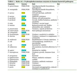 - ↑ Paterson GK, Cone DB, Peters SE, Maskell DJ (October 2009). "The enzyme phosphoglucomutase (Pgm) is required by Salmonella enterica serovar Typhimurium for O-antigen production, resistance to antimicrobial peptides and in vivo fitness". Microbiology. 155 (Pt 10): 3403–10. doi:10.1099/mic.0.029553-0. PMID 19589833.