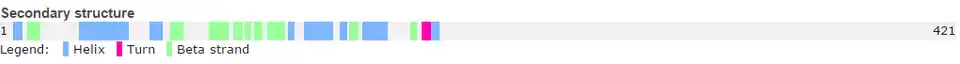 This protein has a length of 421 amino acids, among which, we have to highlight the Glutamine number 58 (Gln or Q), which is crucial for catalytic activity.