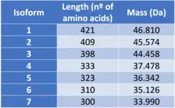 The difference between isoform 7 and the canonical sequence is that the sequence of amino acids in 195th-218th positions (RPPAPSLRATRHSRAAAVDPTPAA) has been changed by proline (P) and also the sequence 334-421 is missing.[6]