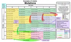 - Radical replacement - an amino acid is exchanged into another with different properties. This can lead to changes in protein structure or function, which can cause potentially lead to changes in phenotype, sometimes pathogenic. A well known example in humans is sickle cell anemia, due to a mutation in beta globin where at position 6 glutamic acid (negatively charged) is exchanged with valine (not charged).