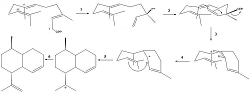 - C-1,C-6-ring closure to generate a bisaboyl cation