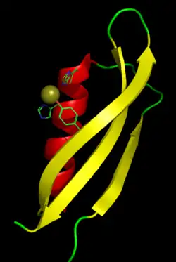 - ↑ Rossjohn J, Cappai R, Feil SC, Henry A, McKinstry WJ, Galatis D, et al. (Apr 1999). "Crystal structure of the N-terminal, growth factor-like domain of Alzheimer amyloid precursor protein". Nature Structural Biology. 6 (4): 327–331. doi:10.1038/7562. PMID 10201399. S2CID 30925432.; see also PDB ID 1MWP
